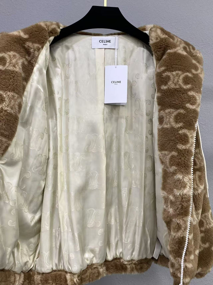 Jacquard pattern warm plush hooded jacket