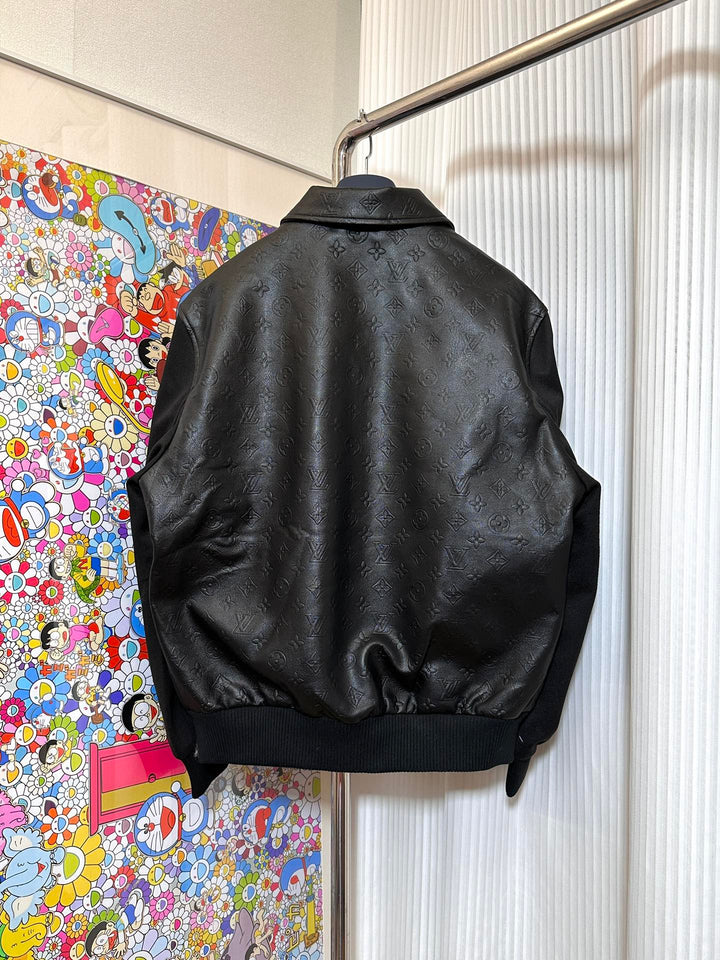 Classic monogra embossed leather all over, sleeves made of blended wool fabric, spliced lapels, casual style, diagonal pocket details, ribbed hem, classic tailoring that is easy to wear.