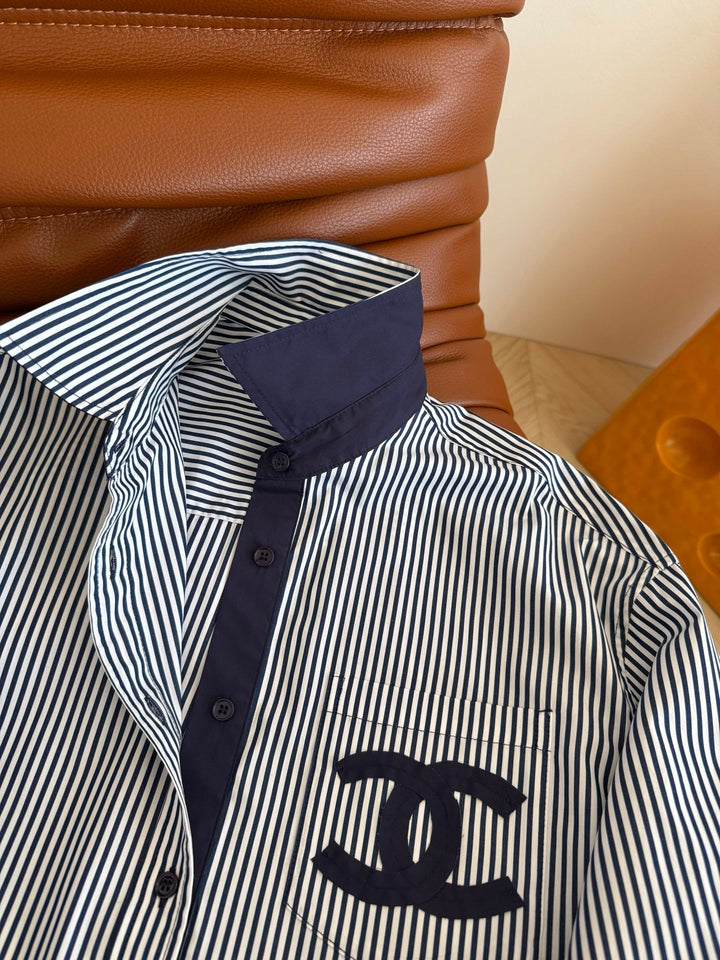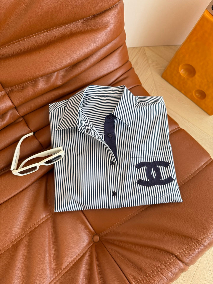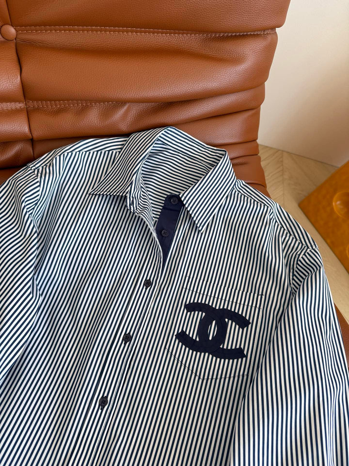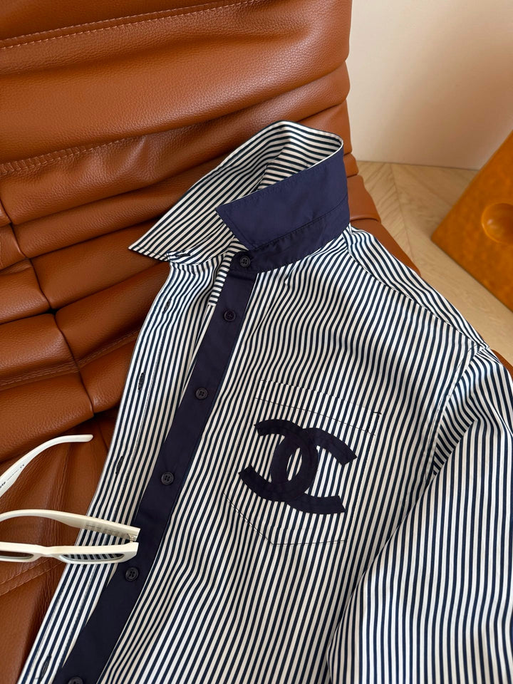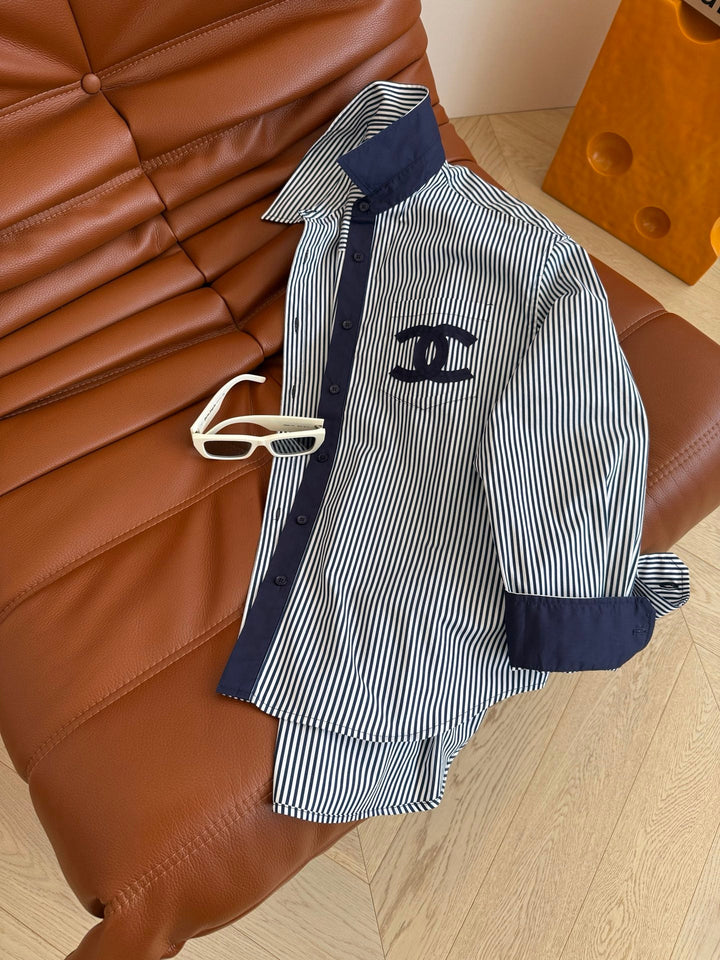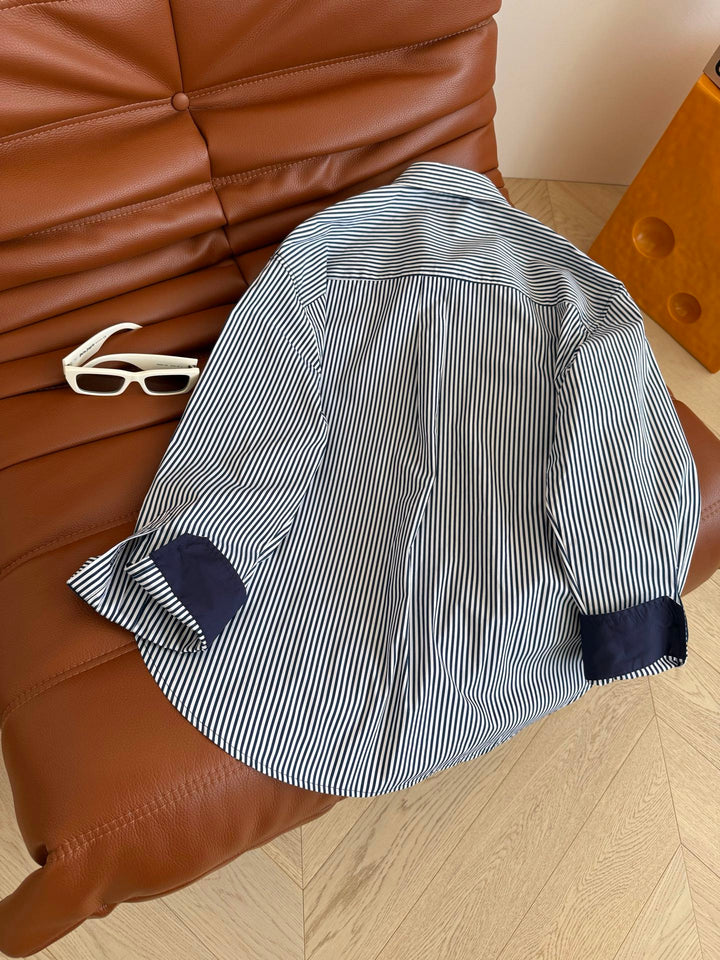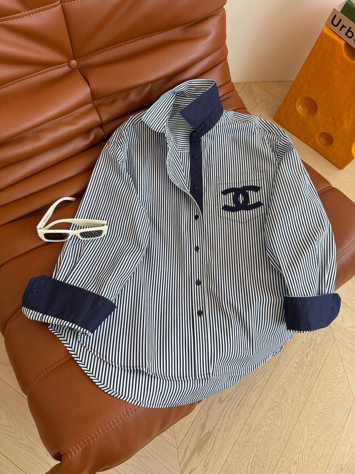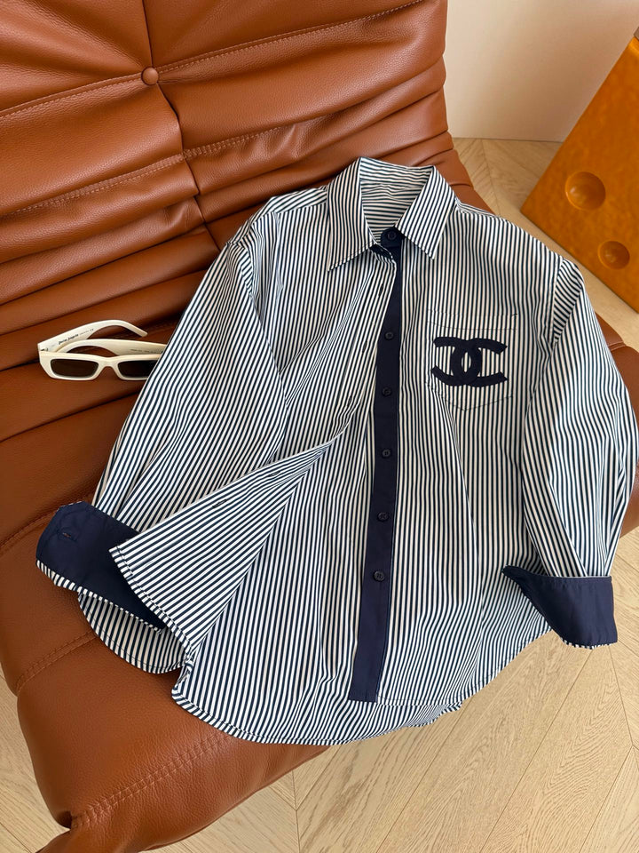 25 Early Autumn 🆕🆕 Navy blue double patch pocket striped shirt. A must-have sun protection shirt for daily wear. The style is a silhouette cut. Loose and loose. It has that kind of cool boyfriend style. The navy blue contrasting color combination is very stylish. Super high value. Lazy and casual with a casual feel. One color, three sizes