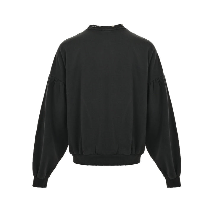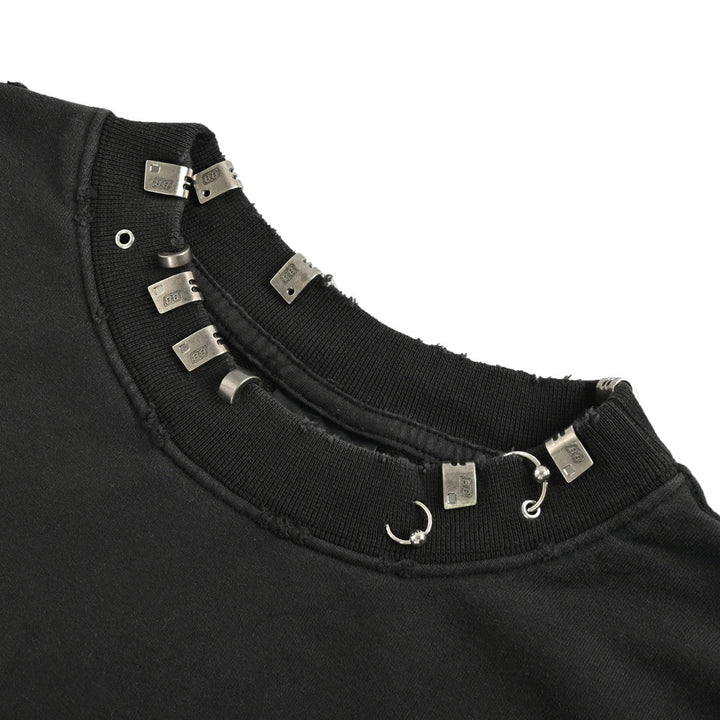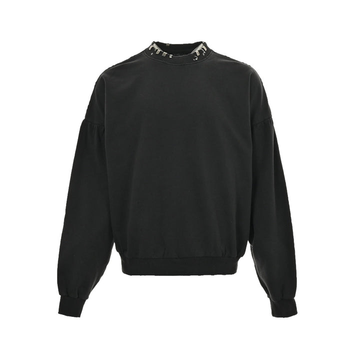 Custom dyed 380g cotton charcoal gray sweatshirt and 500g 1*1 rib. The bones are distinct and the upper body is full of texture. 14 independent hardware buckles are matched with a retro and old style. They are washed and faded, and then washed out to be consistent with the original plate. The effect is that the workmanship is complicated and the loss is high. Many parts of the body are worn and worn by purely manual regular positioning. The hardware at the collar position is purely manually positioned and punctured. The daily output is low, the workmanship is very cumbersome, and the timeliness is slow. Customized light grain color hardware (hardware Independent mold customization, consisting of 14 different molds), loose version