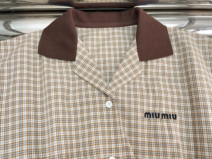 Plaid Shirt Dress with Contrast Collar & Drawstring Waist
