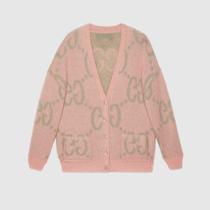 • Pink and light green brushed jacquard mohair wool blend on other side