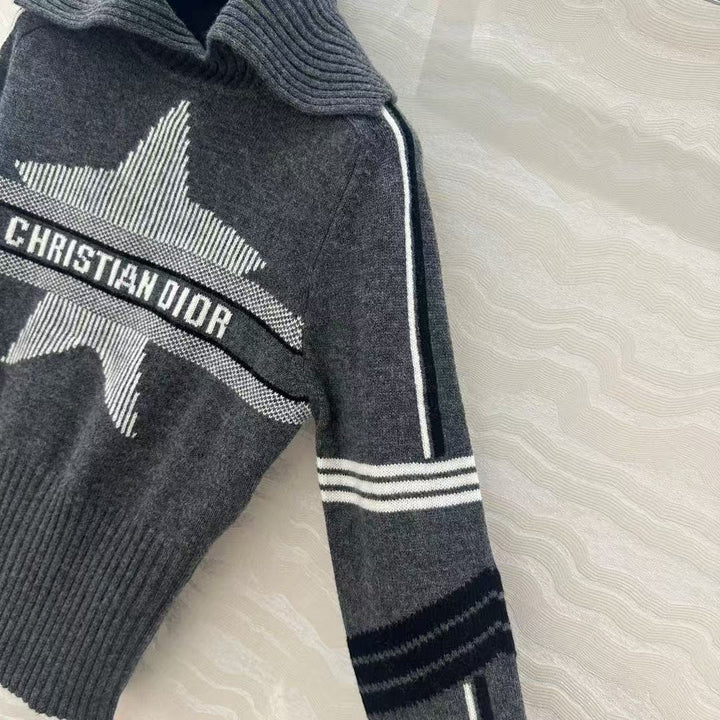 Heavy-duty full-piece hanging wool star letter intarsia craftsmanship! High-end color matching creates a sporty style, customized imported cashmere blended yarn, waist slim proportion classic version, the upper body is very thin! Cool and fashionable single product! White, rich and beautiful must buy!