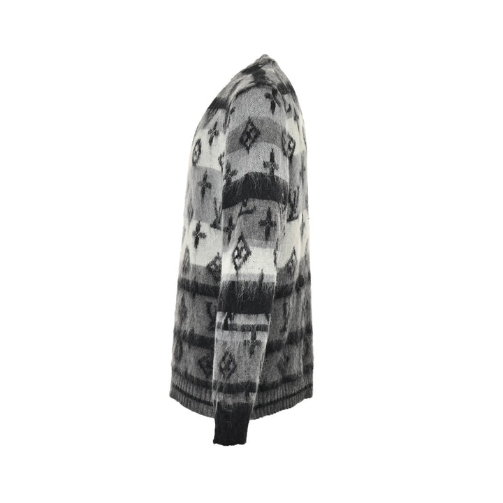 Black and white double G letter printed knitted wool cardigan. Knitted with 2/40 100% cotton. The yarn color is dyed to the original version. After customizing the yarn, it is all twisted and then spliced to achieve the twist and stiffness of the original version. Full-width double G jacquard
