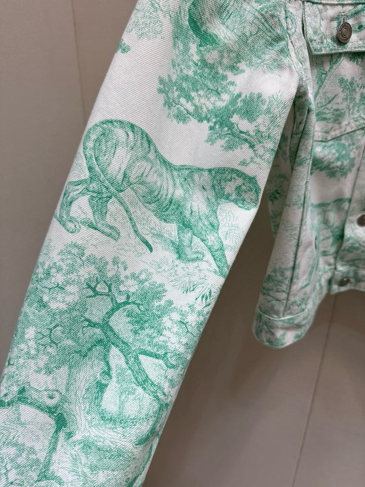 Mint Mambo Color Floral Jouy Animal Denim Jacket