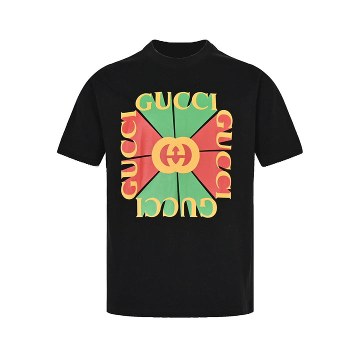 Red and green letter block print short sleeve