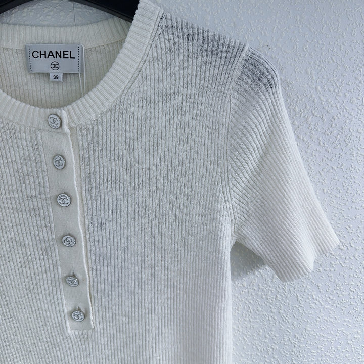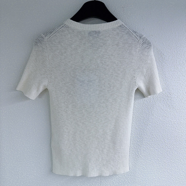 Crew neck logo buttoned short-sleeved knitted half cardigan