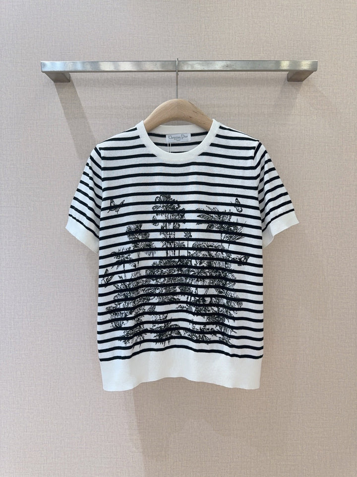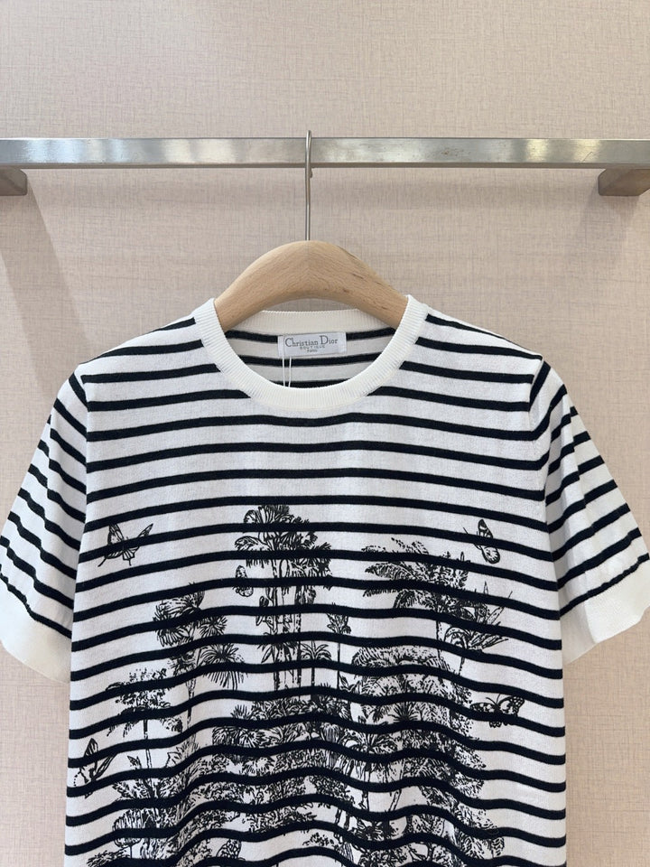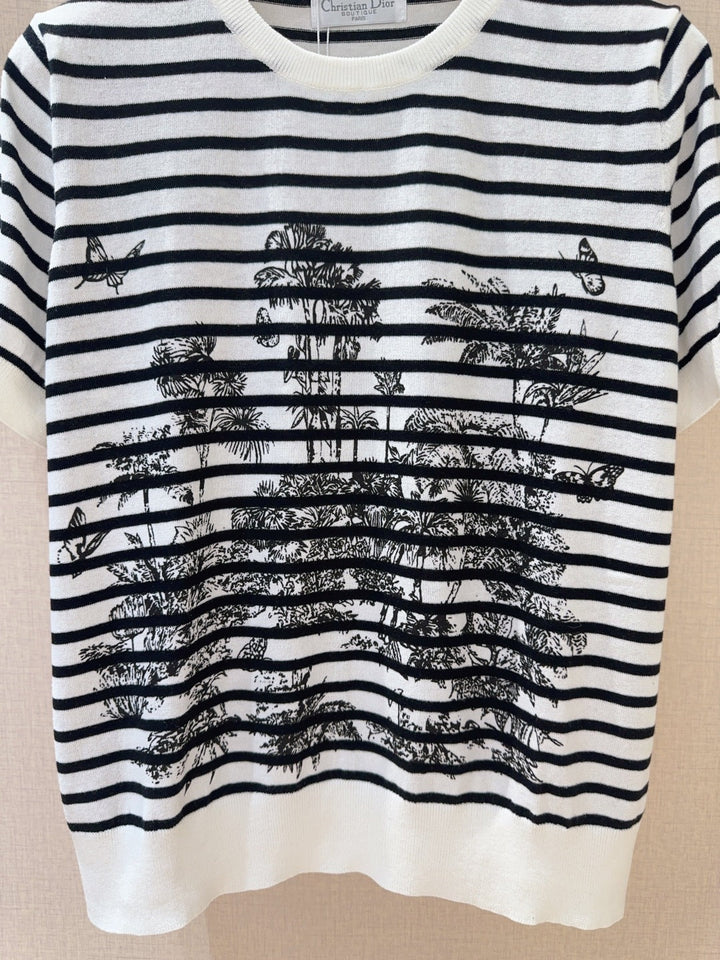 Round neck striped print latest hot coconut tree 🌴 print pullover t-shirt