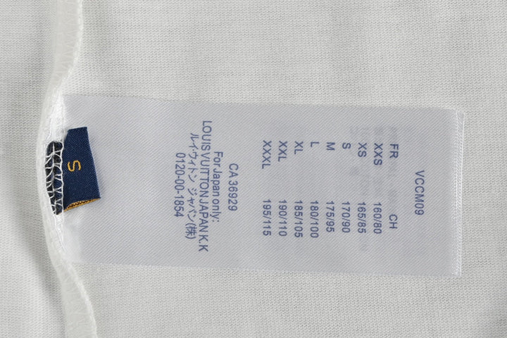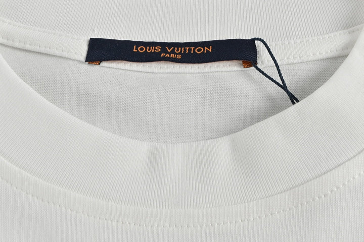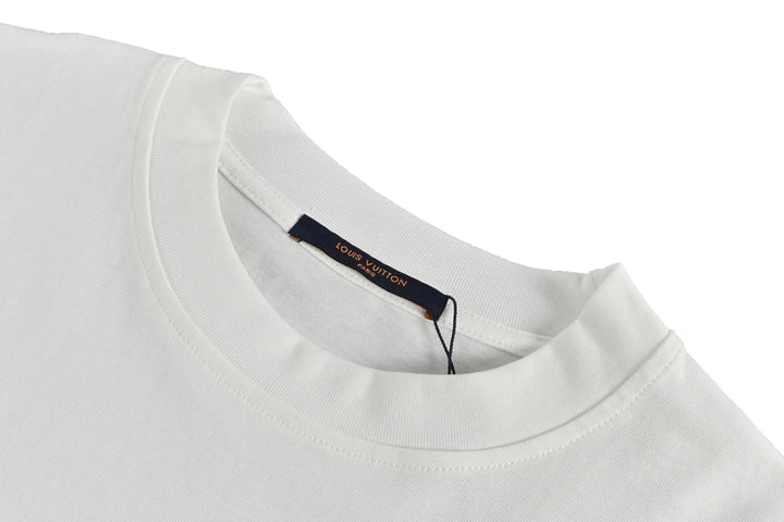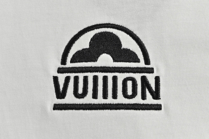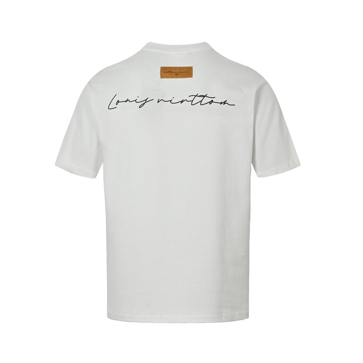 Short sleeves with small floral embroidery and cursive letters on the back