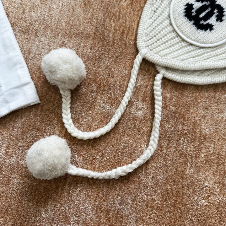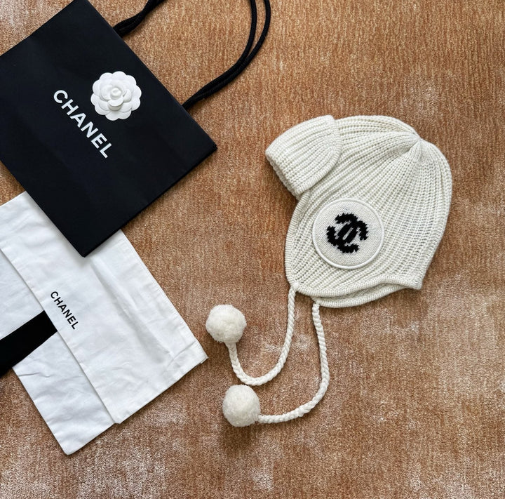 Made from cashmere yarn, this knitted hat is contoured to the head and soft to the skin. It features a draped, sleek earring and a long, furry pompadour for a more adorable look. Layered details highlight the brand's signature design. Extended sides provide protection from the ears, effectively blocking wind and adding style. This versatile and casual style complements any top.