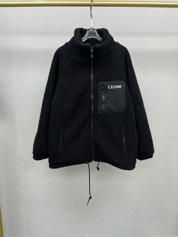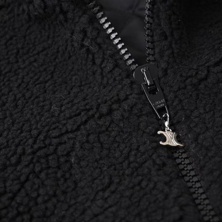 Black pocket lamb wool quilted jacket