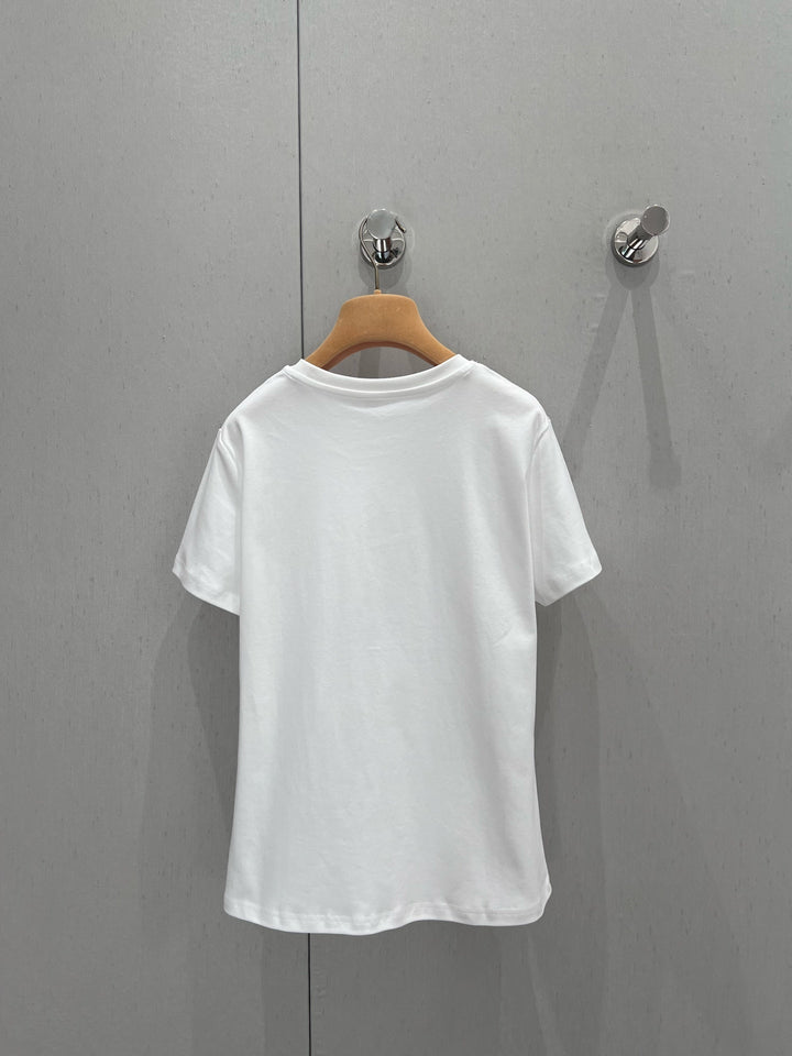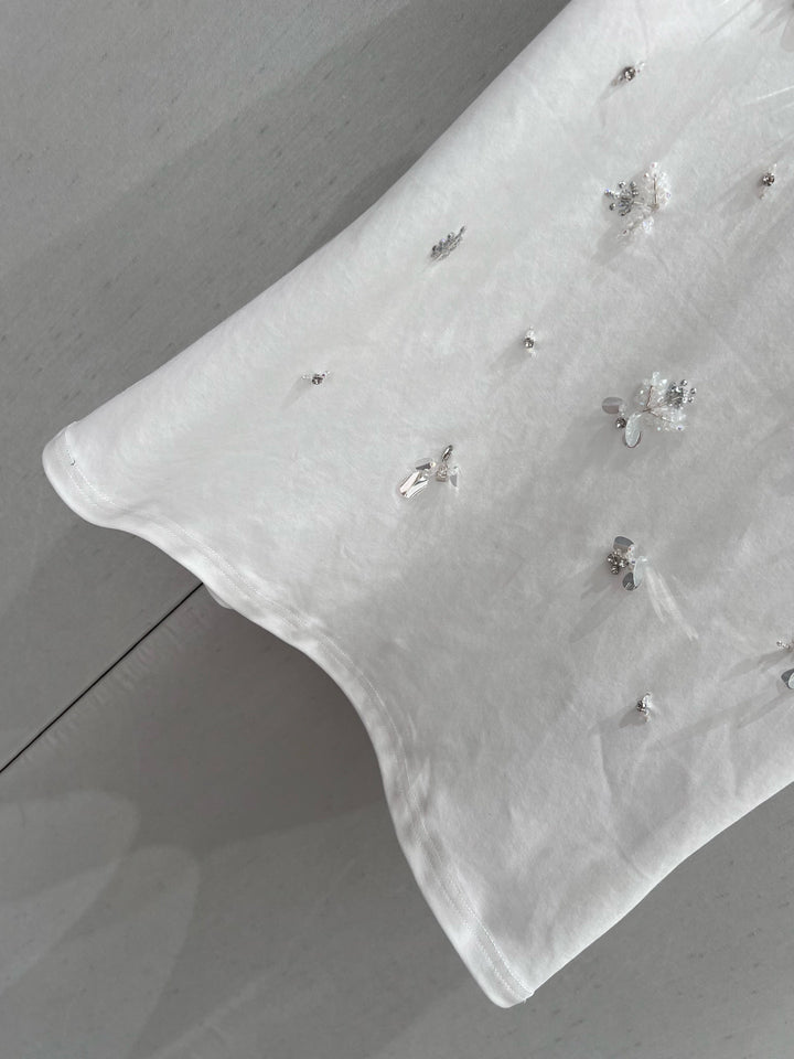 Micro-logo beaded sequined flower round neck short-sleeved T-shirt