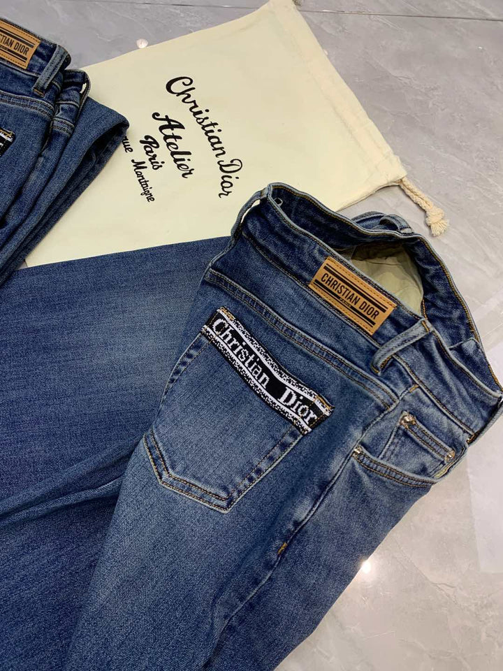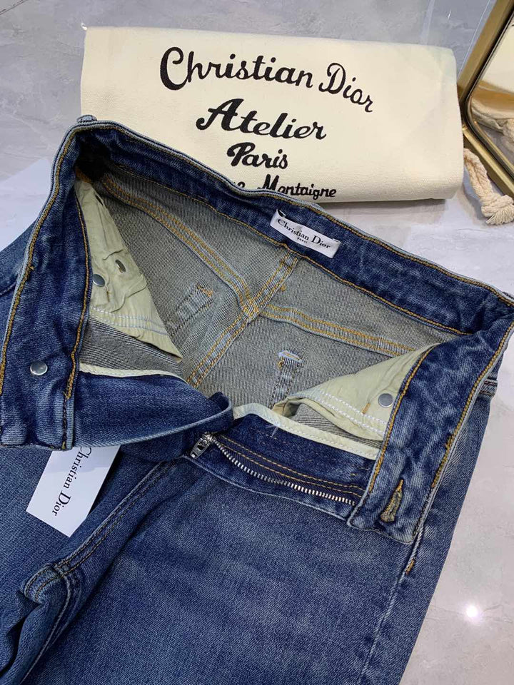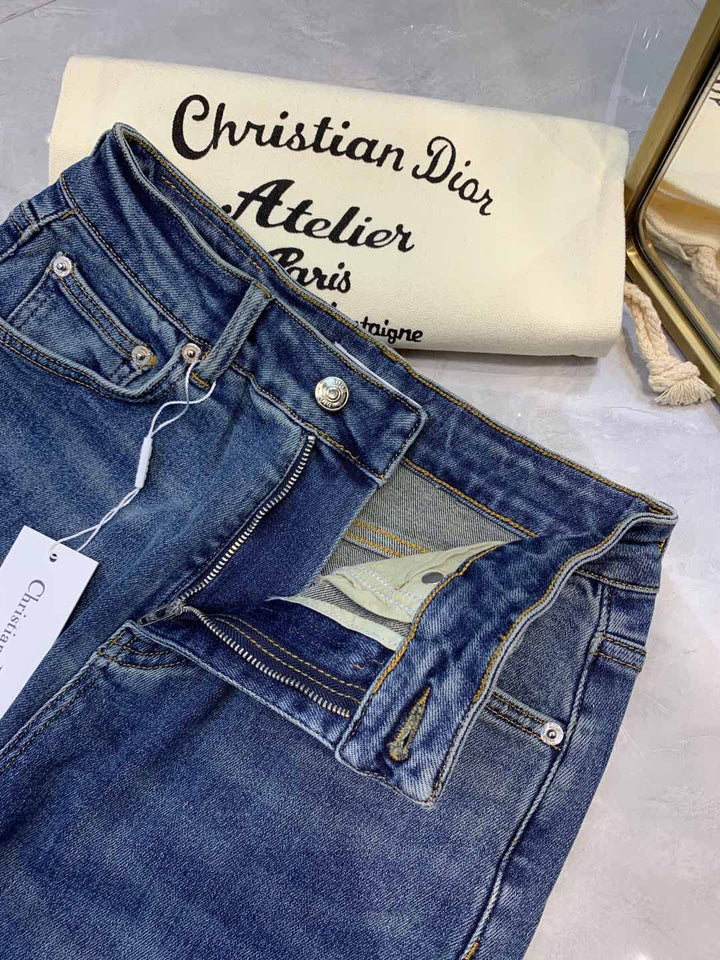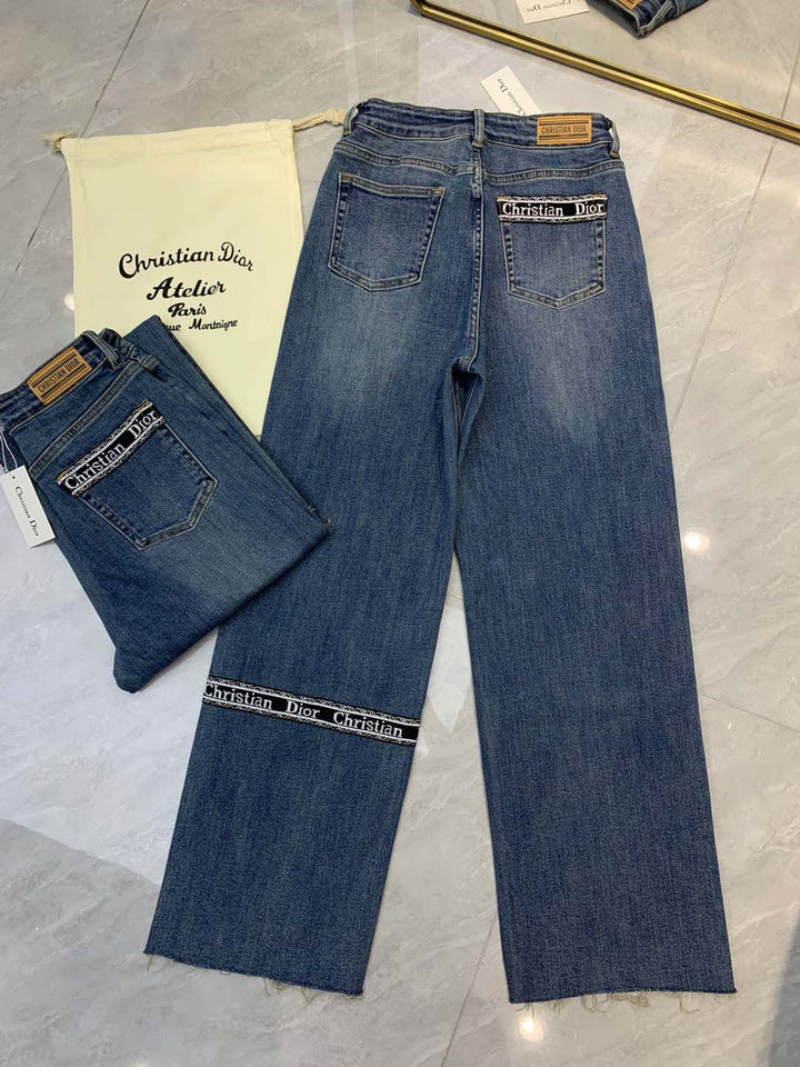 Raw-edge straight jeans Custom-made pure cotton washed denim fabric Super soft and comfortable Logo embellishment on the back pocket Straight wide-leg version Super slimming Suitable for any leg shape Versatile Highly elastic fabric