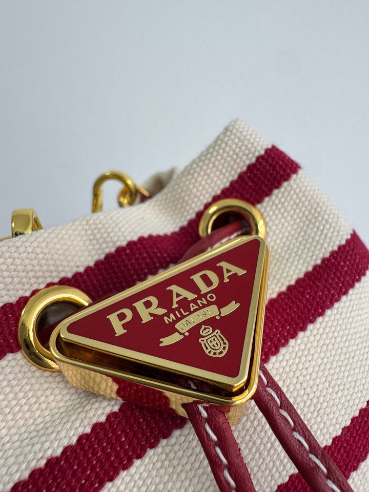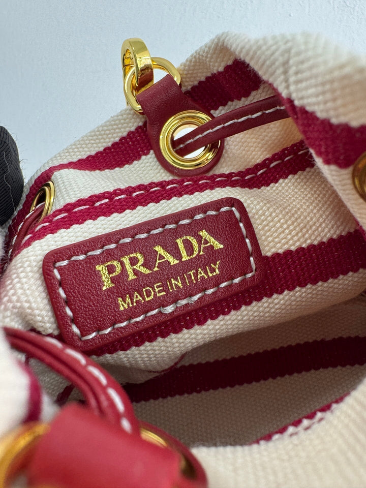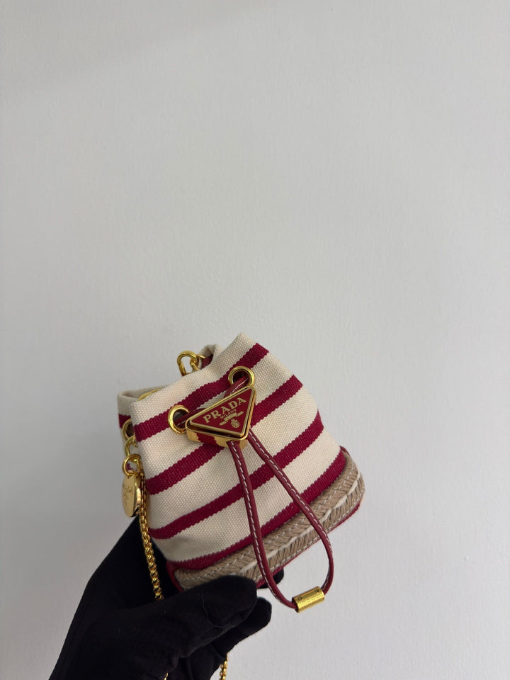 Striped Canvas Mini Bucket Bag with Gold Hardware
