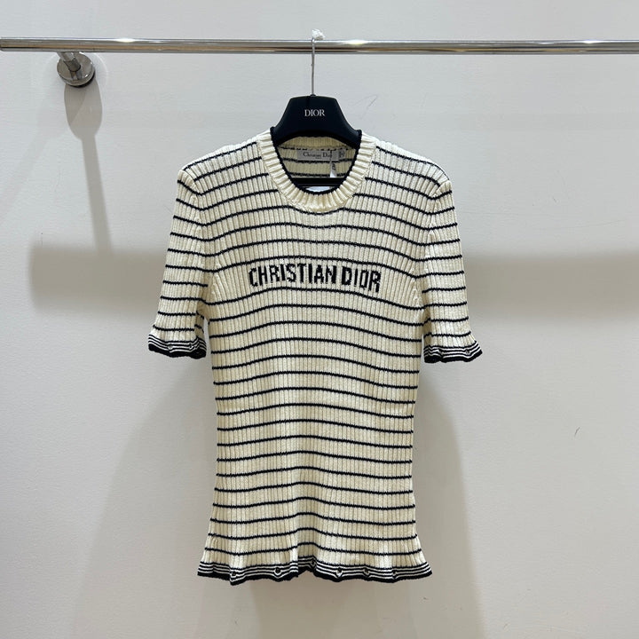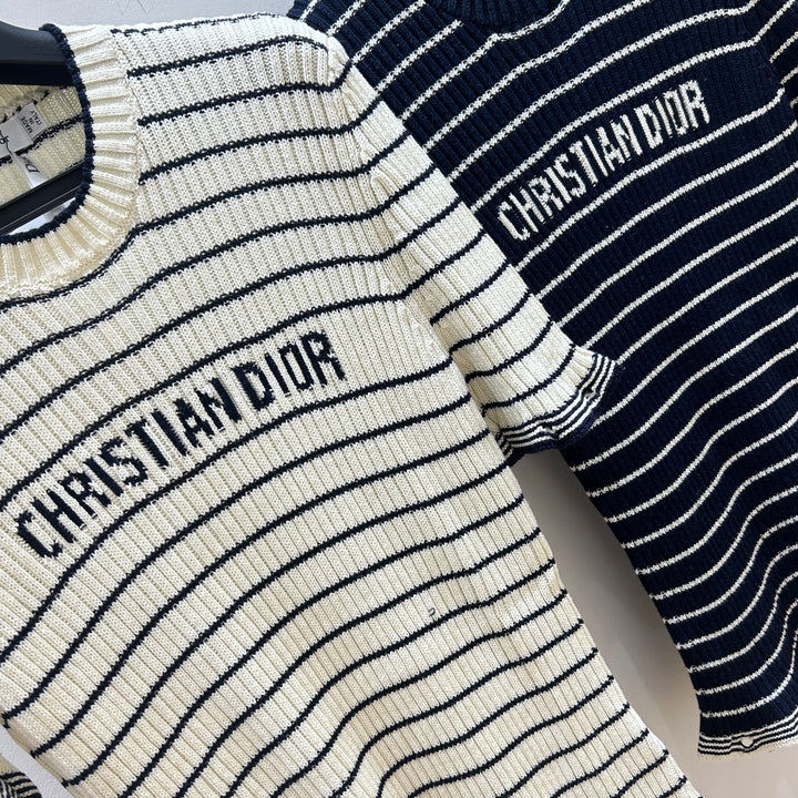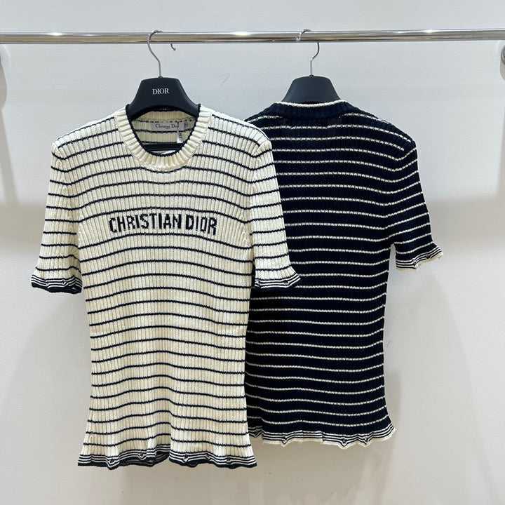 The striped stitching is a classic upgrade, the perforated round neckline shows the delicate clavicle, simple yet stylish, the best choice for summer women's clothing, showing elegance.