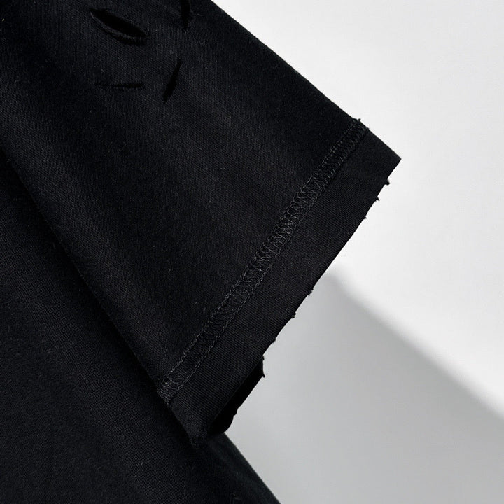 Summer new fashion knife cuts holes in cotton round neck short tee,