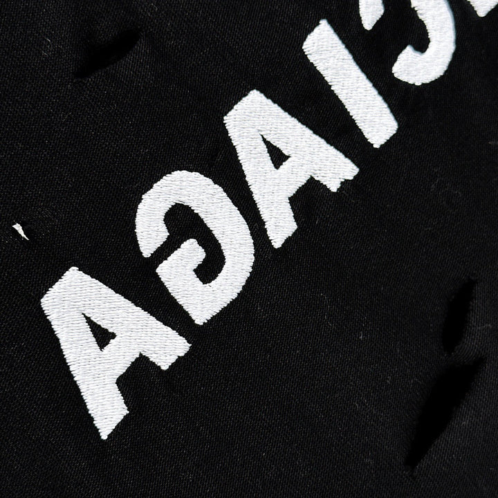 This T-shirt is made of 240g long-staple cotton fabric that is custom-woven and dyed by customers. After color-fixing treatment, the color is warm and soft, and it feels soft against the skin, bringing unparalleled comfort to the wearer! The mirrored letter logo is embroidered on the front, which is made by Produced by Tajima embroidery machines imported from Japan, the fonts are clear and stylish, showing unique artistic charm! This design not only improves the overall visual effect of the T-shirt, but also makes it more personalized and unique! The body is made of irregular handwork The design of cutting holes with a knife, and then sewing and repairing them with imported fur machines, is exquisite in craftsmanship. This design concept breaks through the traditional constraints and shows an eclectic fashion attitude! The loose silhouette and cutting of os make This T-shirt is more inclusive. Whether you are thin or plump, you can wear it in your own style! Ba's unique high collar and inside-out design make this T-shirt full of trend. breath