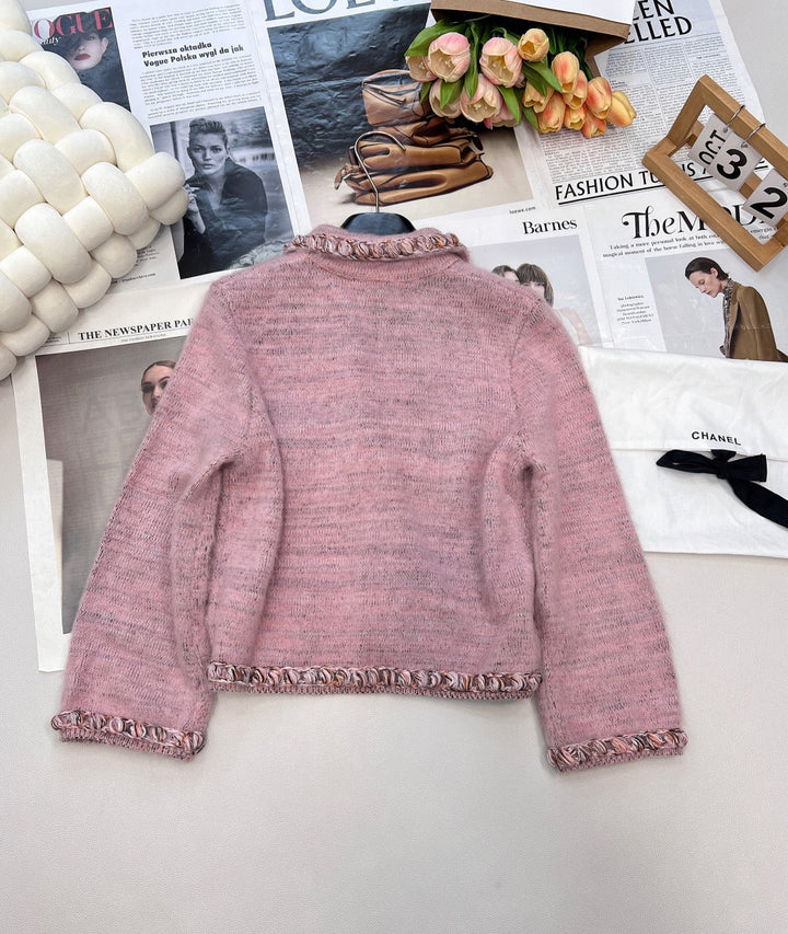 A floral pink cardigan for girls! ⚠Exclusively developed by YB! High-quality product! Rhinestone hook clasp, a stunning fairy-like accessory! Custom-woven special yarn lace is truly stunning! Hand-drilled, shimmering and luxurious, the elegant lapel and H-shaped short silhouette create a flattering look with a sleek, soft texture. Gentle, elegant, and girly, this look is perfect for everyone! All three labels are complete, and we're shipping in bulk!
