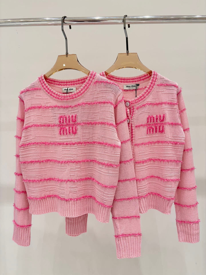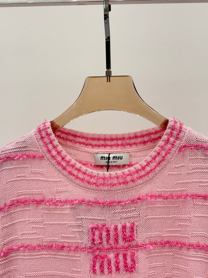Long sleeves | 25 spring and summer new round neck letter logo three-dimensional jacquard simple stripes contrast color casual knitted long sleeves