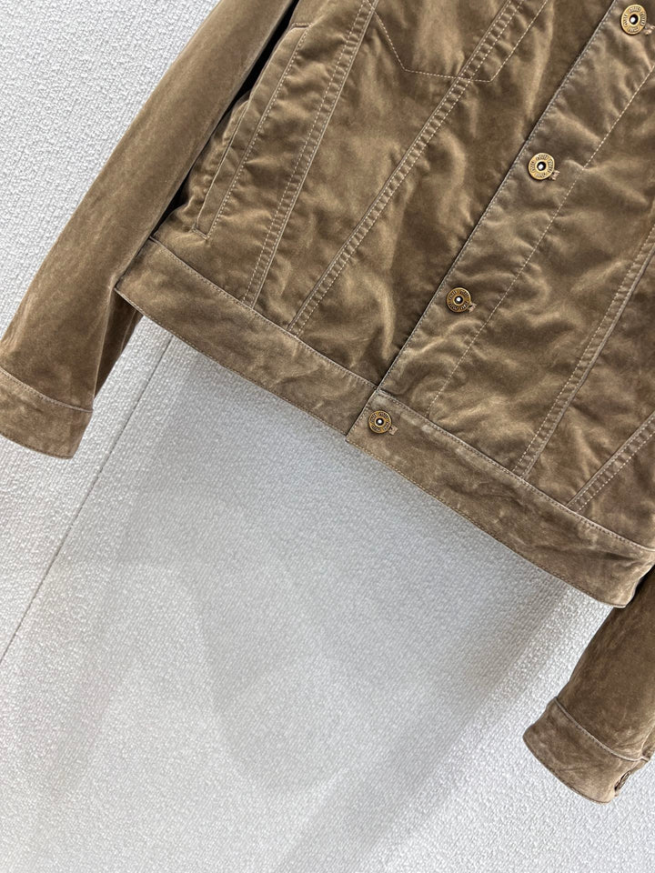 25Ss Spring/Summer New Velvet Denim Lapel Single-Breasted Jacket | ⚠ Exclusively developed by YB! High-quality product! Imported 100% velvet denim fabric. Enzyme-washed multiple times for a retro and stylish look. The iconic 3D lettering logo on the chest fully reflects the brand's trendy positioning. The short-sleeved style adds a visual highlight to the top, making it stylish and fashionable! Perfect workmanship and quality are reflected in the details. Available now in SML.