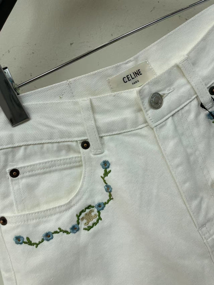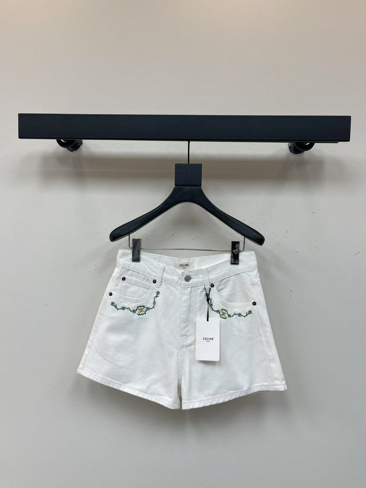 25 New summer outfits are indispensable items, white denim shorts decorated with embroidered letters. Looks simple and looks great on the upper body, no worries about matching, visually slimmer. Fashionable, very slim thighs.