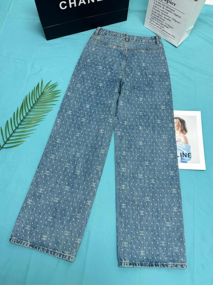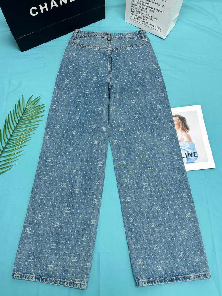Polka dot laser-burnished, heavily crafted, double-C wide-leg straight-leg jeans!
