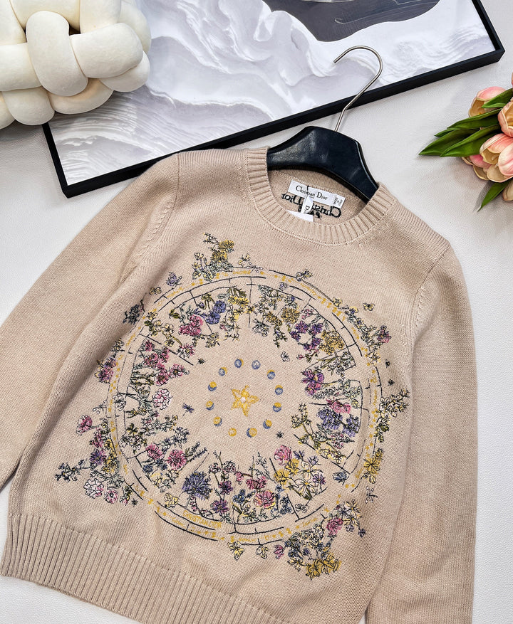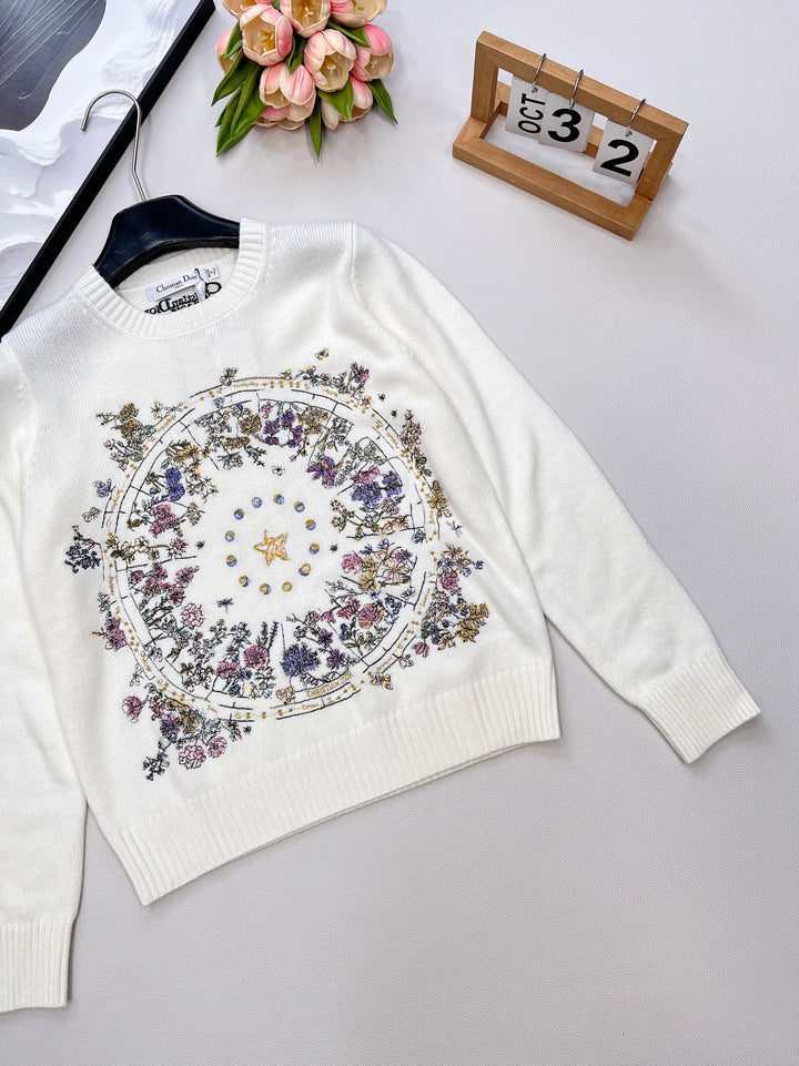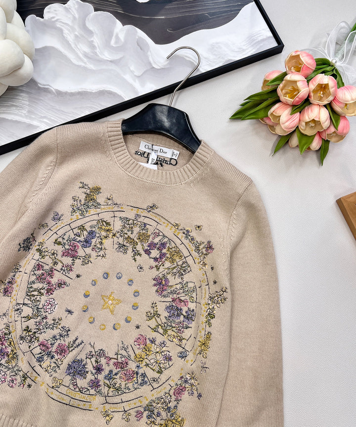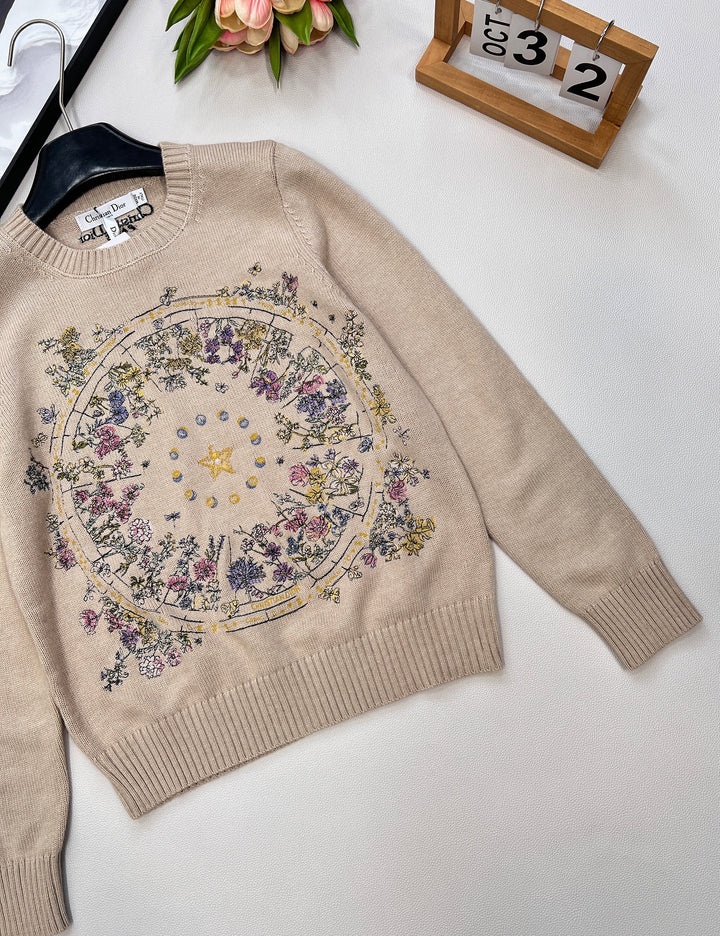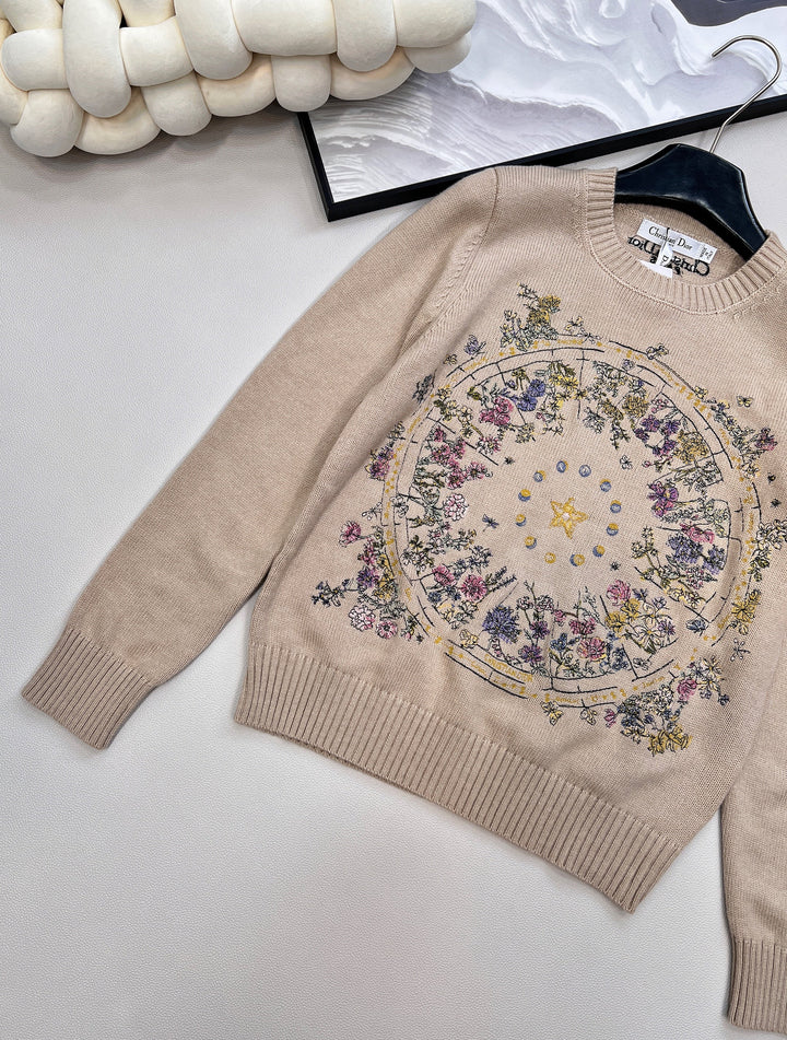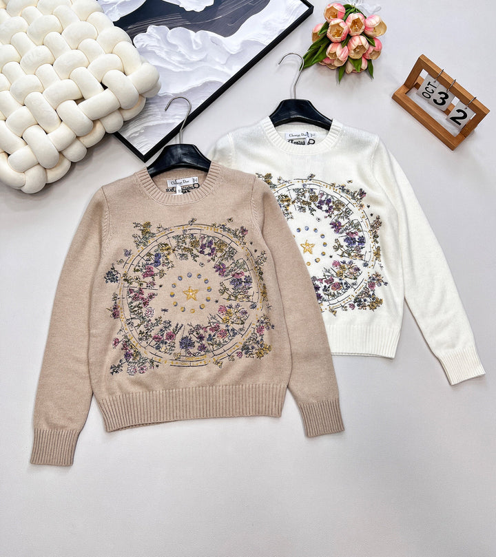 Limited Edition Floral Five-Pointed Star Gold Embroidered Wool Sweater