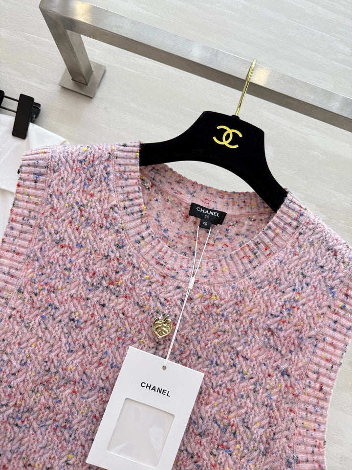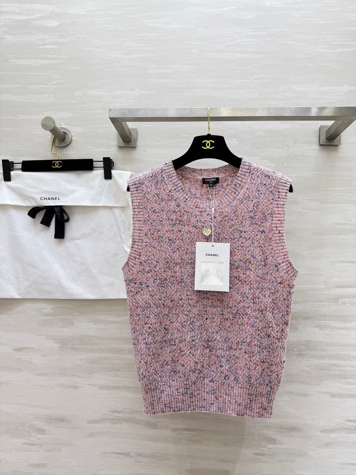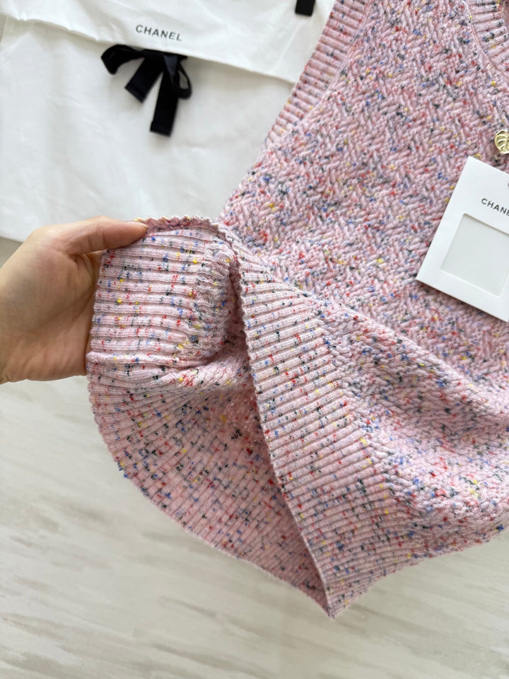 High-end handmade workshop custom wool yarn knitted vest with iconic button embellishment. The fabric is soft and skin-friendly. It is versatile and comfortable to wear. High-quality customization. In stock for the first time. Size: 363840